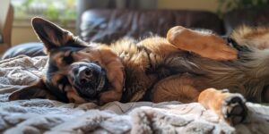 Some shepherds take this to extremes, insisting on sleeping in your bed, on your bed, or at minimum, touching some part of you while they sleep. They might start at the foot of the bed and slowly migrate until you’re clinging to three inches of mattress while your dog stretches out in luxury. This isn’t dominance; it’s pure, unadulterated affection (and maybe a little bed hogging).